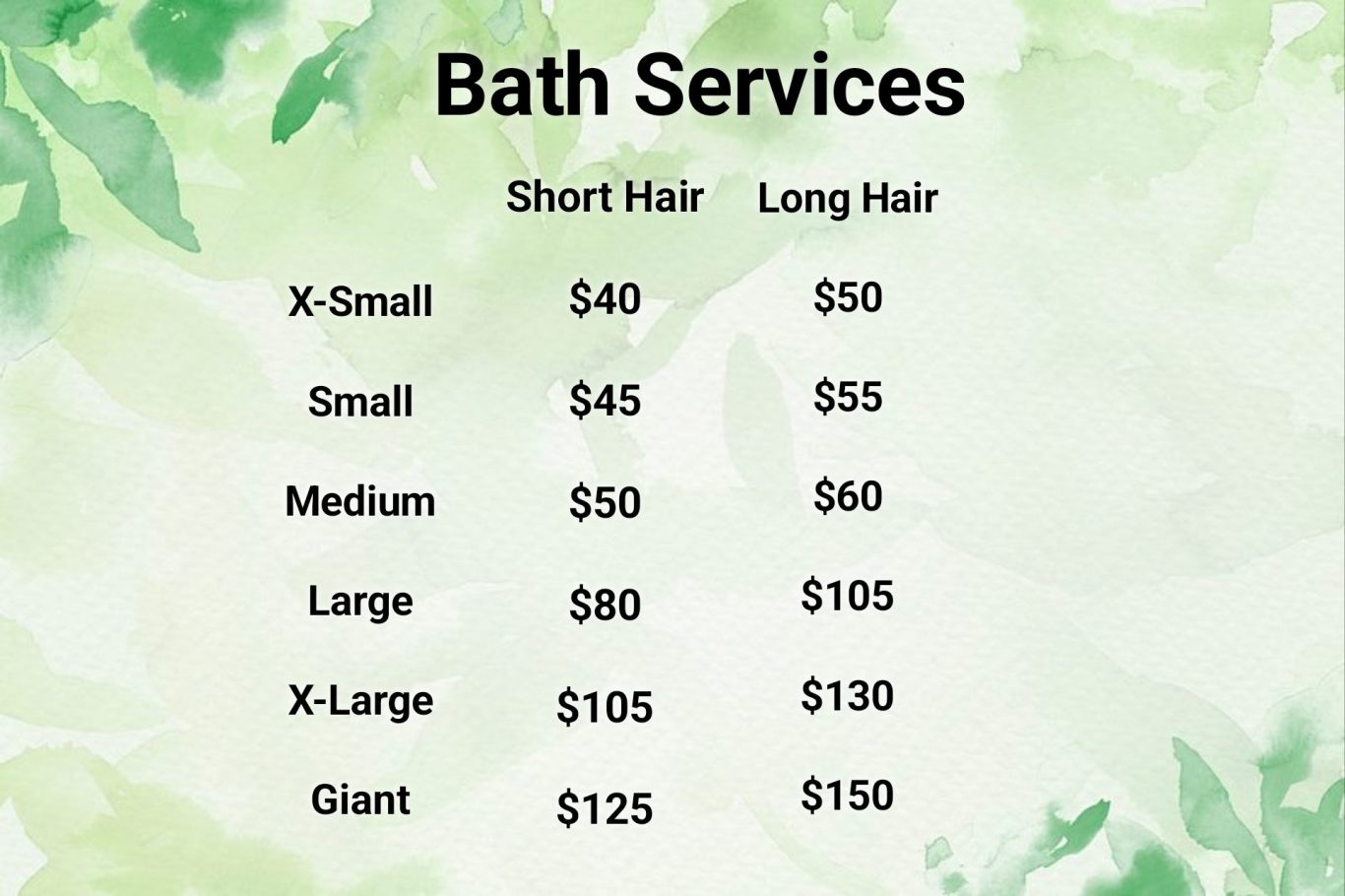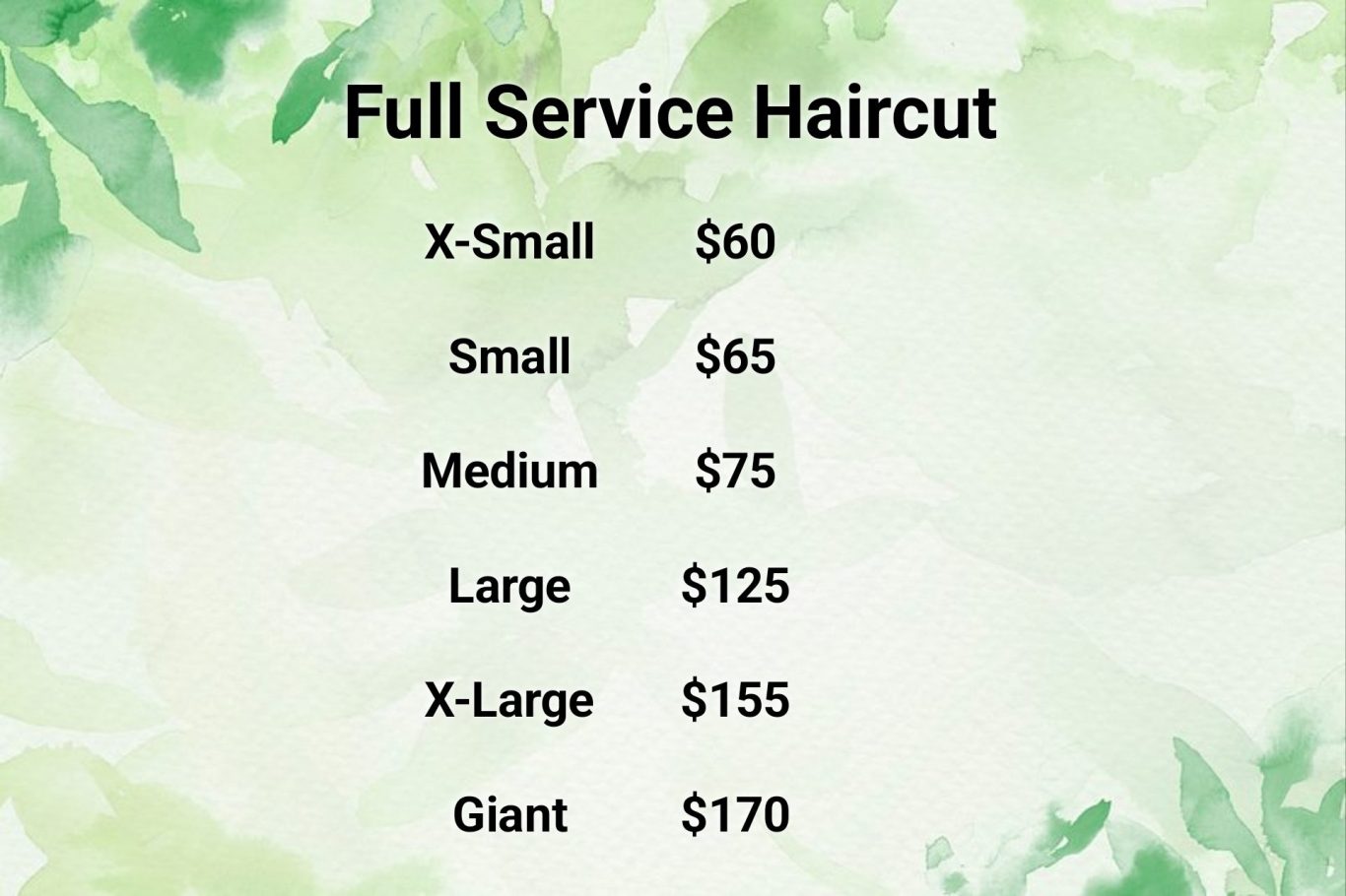 Each service is divided into different weight categories. Start here to figure out which size your pup falls under! Don't worry if you don't know for sure, we have a scale in the salon you can use when you come in to know for sure!