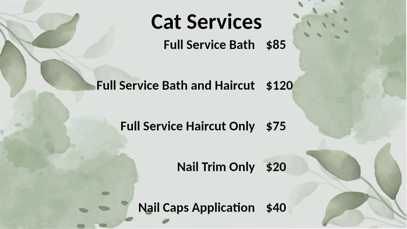 Certified in Cat Grooming and Behavior, all services are performed in a Dog Free Space with Cat Approved Products.