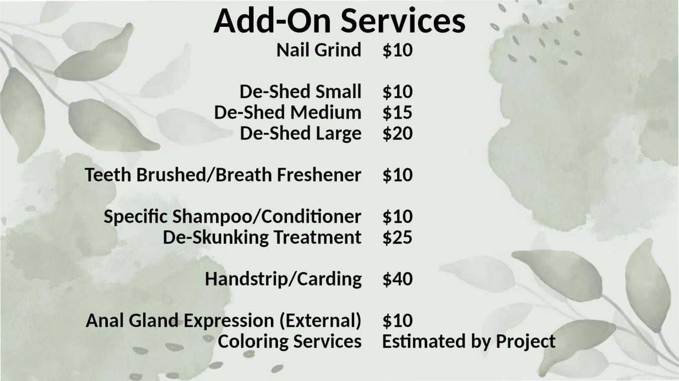 Looking for just a little bit more? Add any of these additional services to a Full Service Groom or schedule them as a Stand-Alone Service!